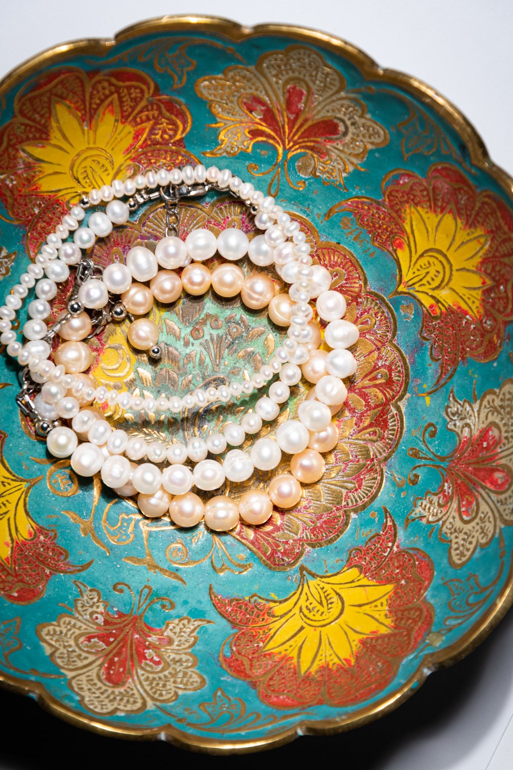 Dámsky nadčasový náramok, vyskladaný z drobučkých riečnych perál. Náramok je na zapínanie s karabínkou z chirurgickej ocele.