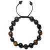 Ručne vyrobený pánsky náramok z dielne TopTob z ónyxu, achátu, hematitu, bronzitu, lávy a tigrieho oka so zirkónovou guľkou a flexibilným zapínaním